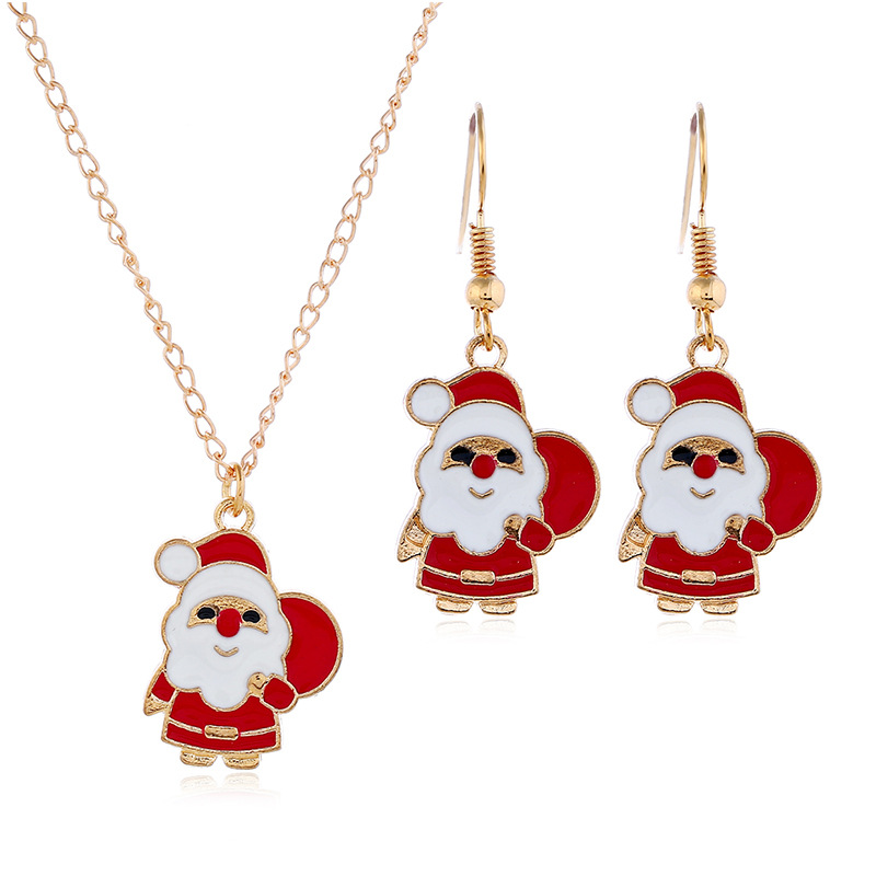 Colorful Santa Claus Gift Earrings Necklace Set