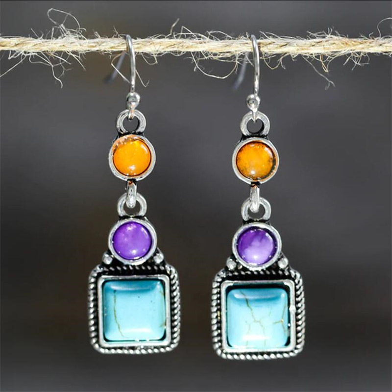 Ethnic Style Earrings Ancient Silver Simple And Exquisite Gemstone