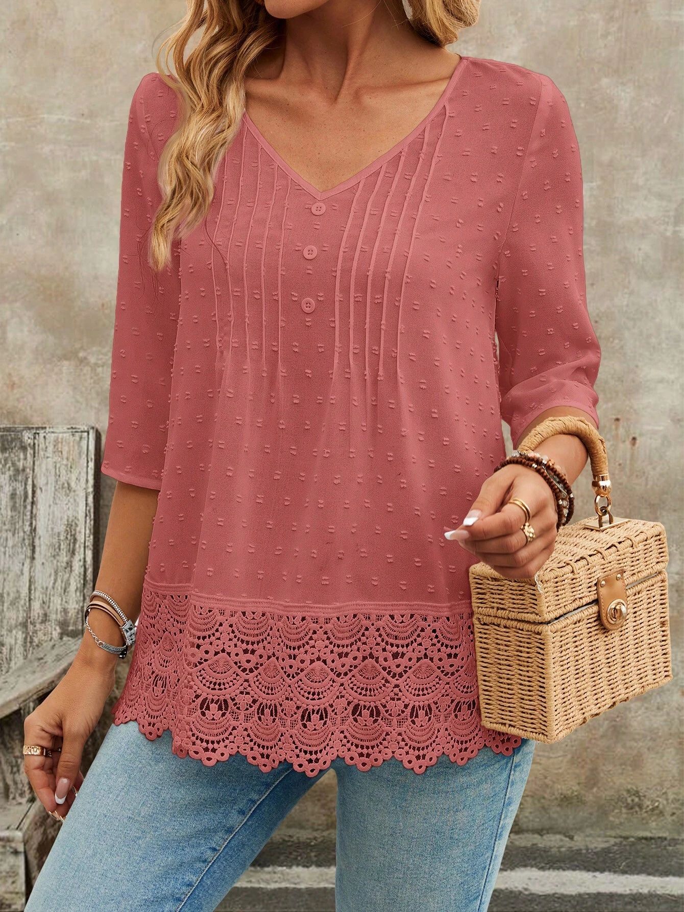 Hollow-out Embroidered Casual Women's Blouse