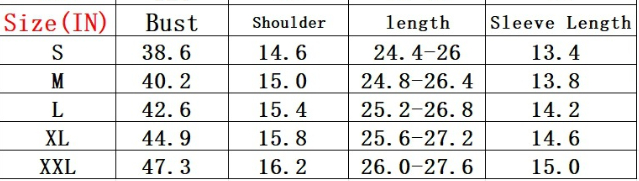 Sizes: S, M, L, XL, 2XL