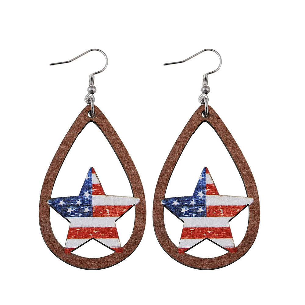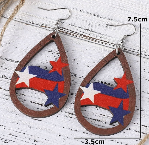 Independence Day Wood Stars Earrings