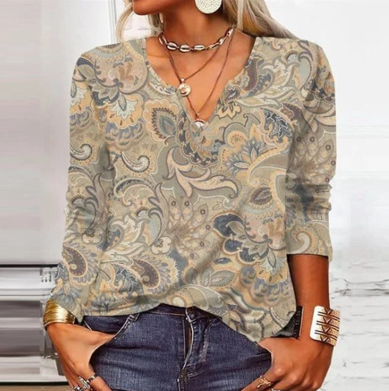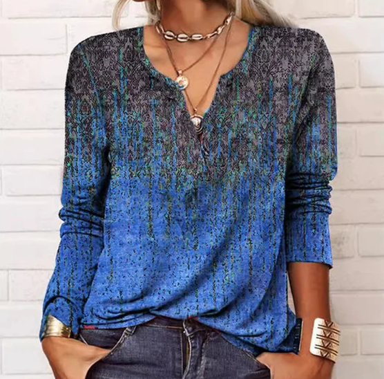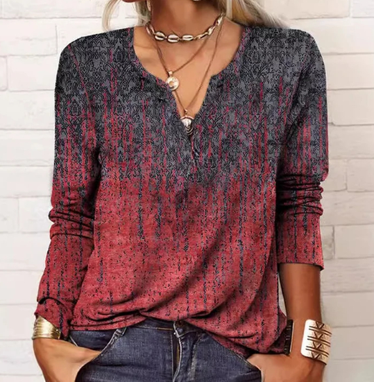 V-Neck Gradient Pattern Long-Sleeve Top